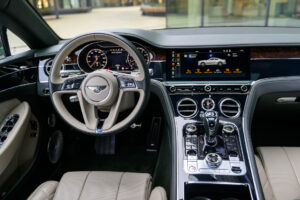 Bentley Continental GT W12 Vehicle body covered in paint protection film (PPF). Additional second winter wheels set. Additional equipment: Extended Range - Solid and Metallic Alpine Green Color Mulliner Driving Specification with Black and Polished Edge Alloy Wheel Touring Specification Front Seat Comfort Specification Continental Blackline Specification Heated Windshield Panoramic Glass Roof Heated, Duo-Tone, 3 Spoke, Indented Hide Trimmed Steering Wheel Deep Pile Overmats - Front Battery Charger - European Adaptor Bang & Olufsen for Bentley Valet Key Dual Finish - Dark Stained Burr Walnut over Grand Black Fresh Air Intake and Air Ionizer City Specification Inductive Phone Charger